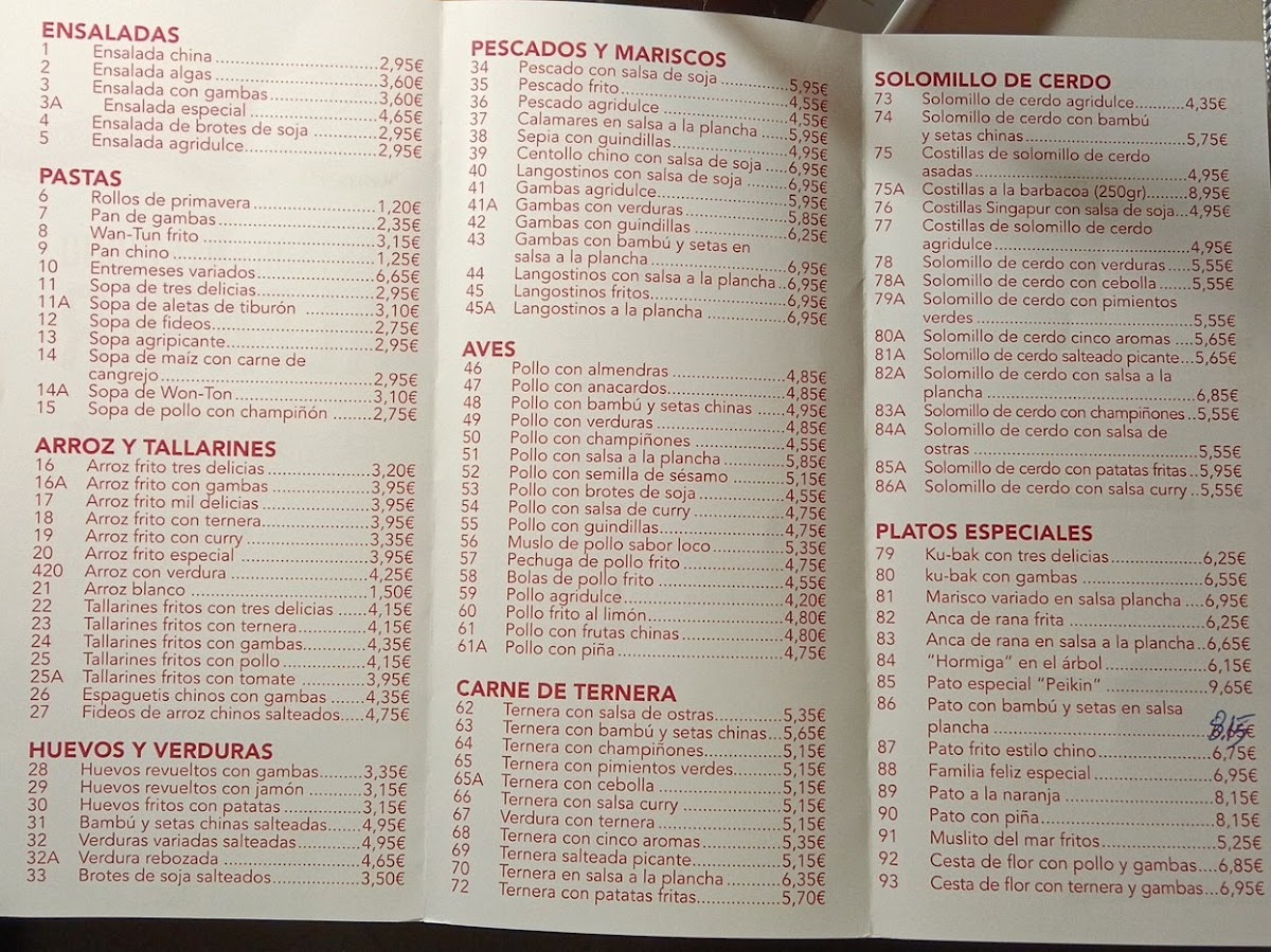 Guests can expect a variety of flavorful options ranging from comforting noodle dishes like Tallarines con Ternera to lighter starters such as Rollo Primavera. The menu also includes hearty plates like Pollo con Almendras paired with sides like Arroz Tres Delicias, perfect for those seeking a fulfilling, balanced meal. For seafood lovers, grilled selections such as Marisco Variado a la Plancha provide a fresh touch.