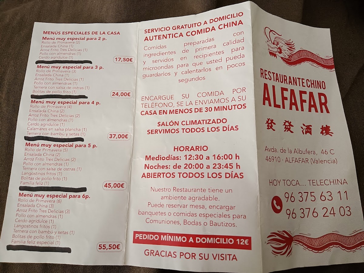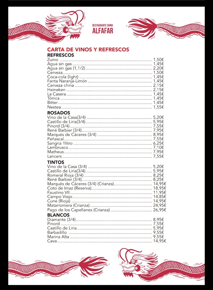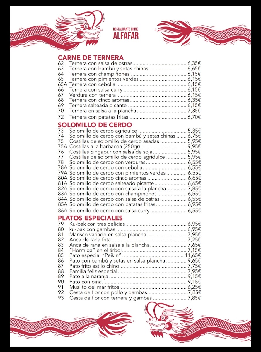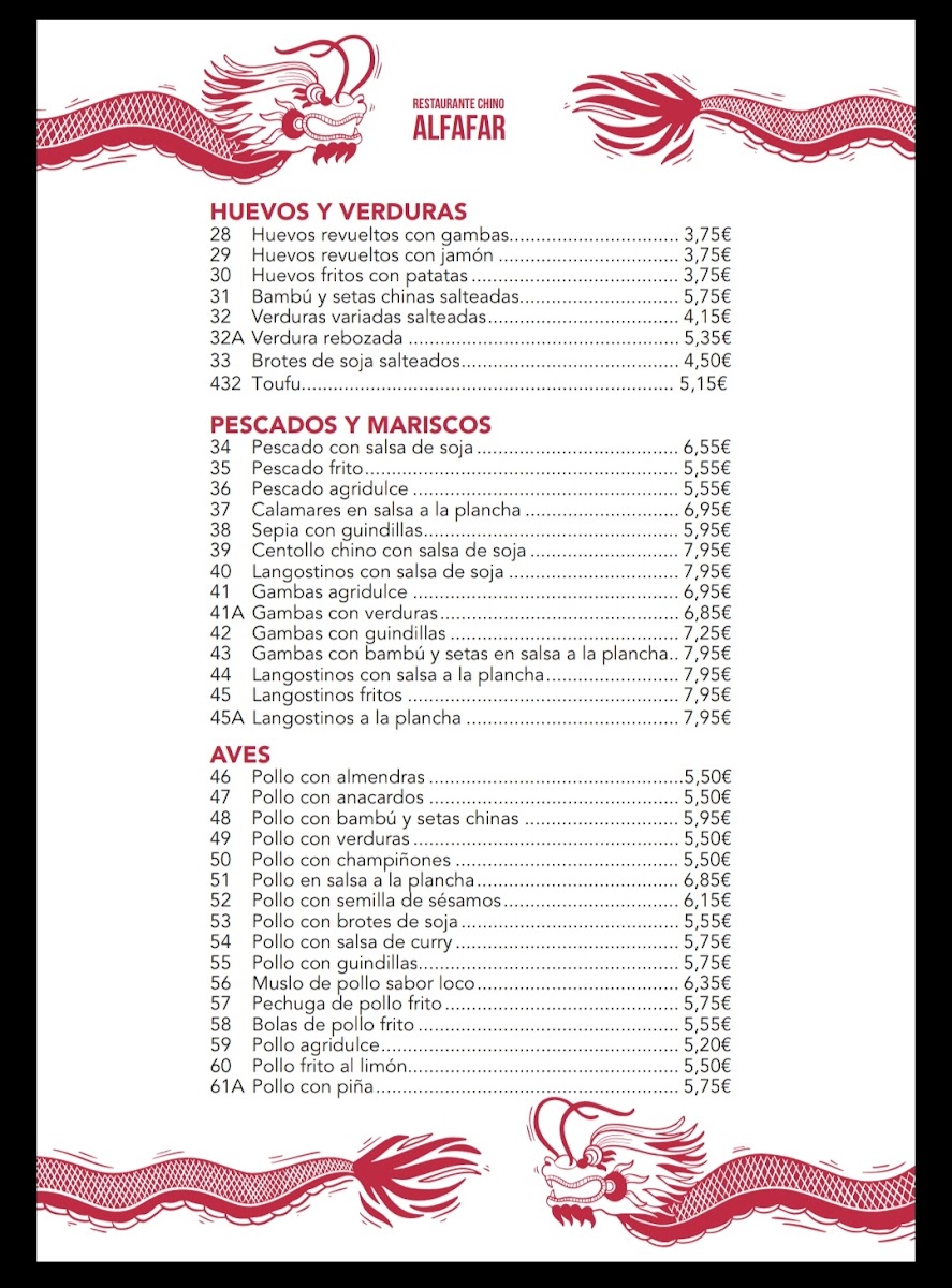 Alfafar Restaurante Chino Menu